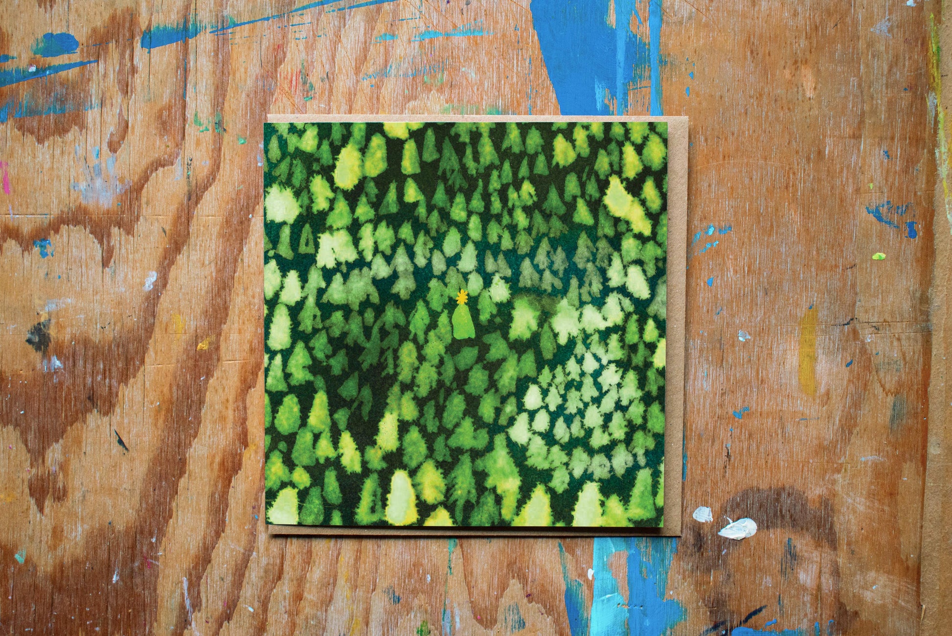A festive greetings card with a Forest star design, digitally printed with organic ink onto 100% recycled paper with 100% recycled paper envelopes.