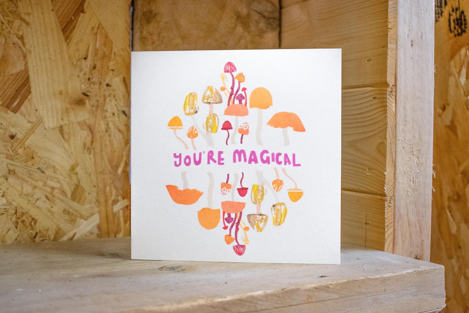 A heartfelt greetings card with a 'You're Magical' design, digitally printed with organic ink onto 100% recycled paper with 100% recycled paper envelopes.